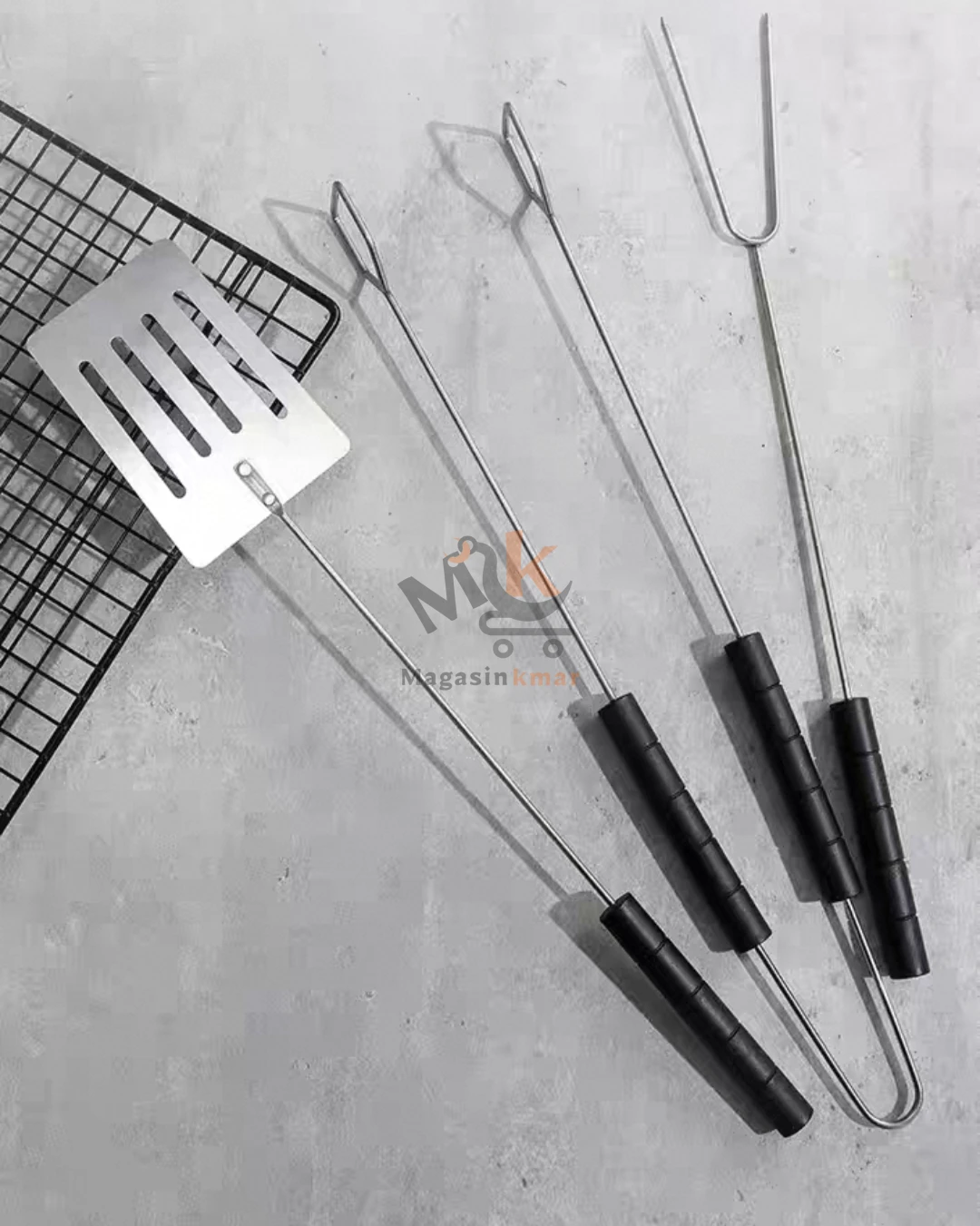 Kit accessoires barbecue 3 pièces en métal – Spatule, pince et fourchette 40 cm