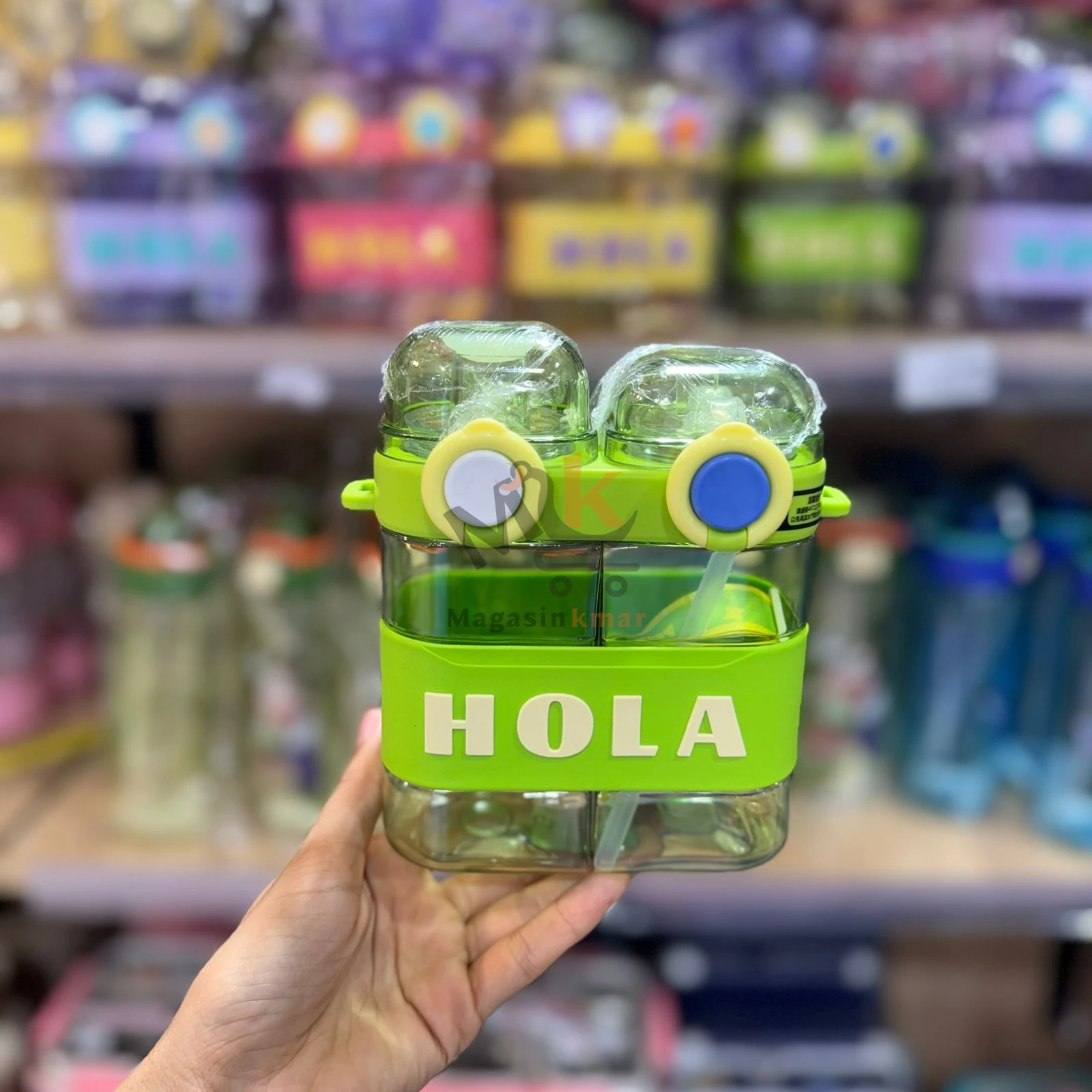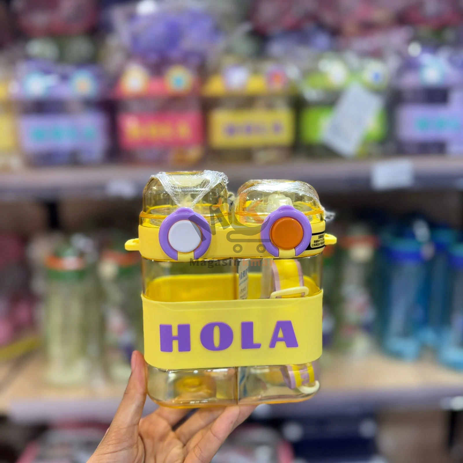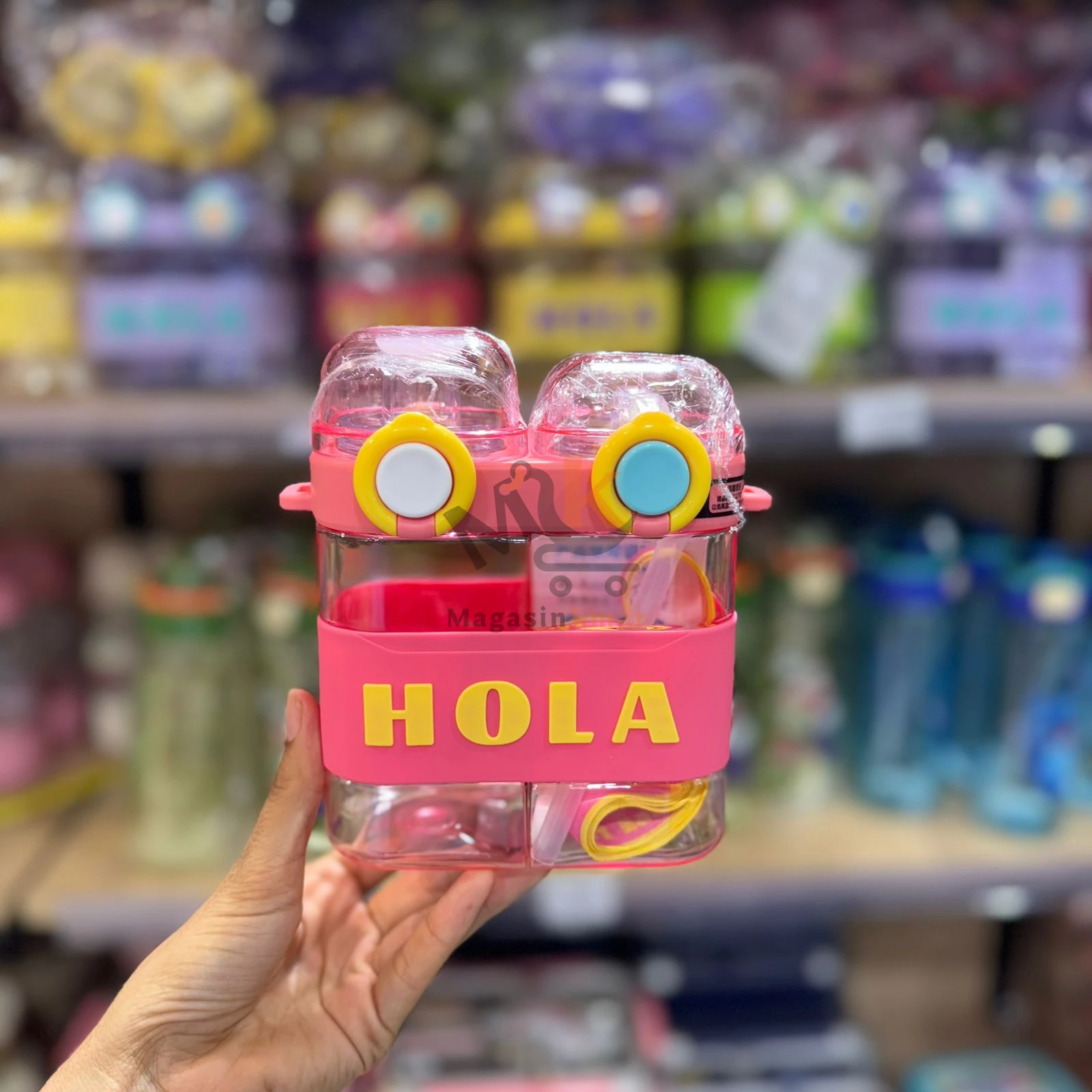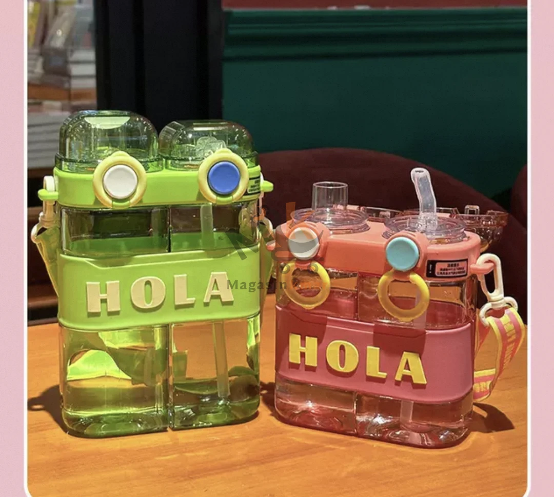 Bouteille 2en1 HOLA en plastique alimentaire avec ceinture