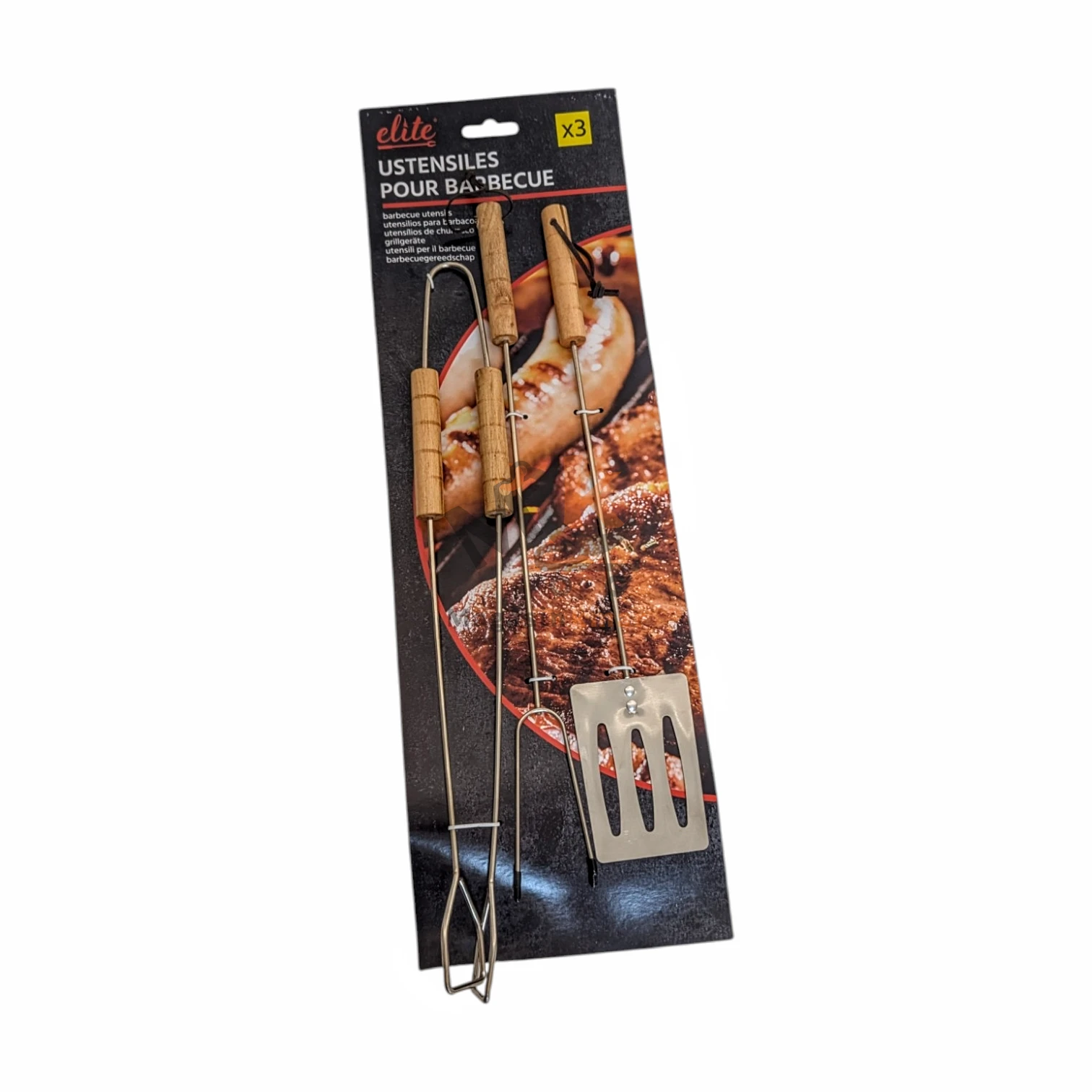 Kit accessoires barbecue 3 pièces en métal – Spatule, pince et fourchette 40 cm