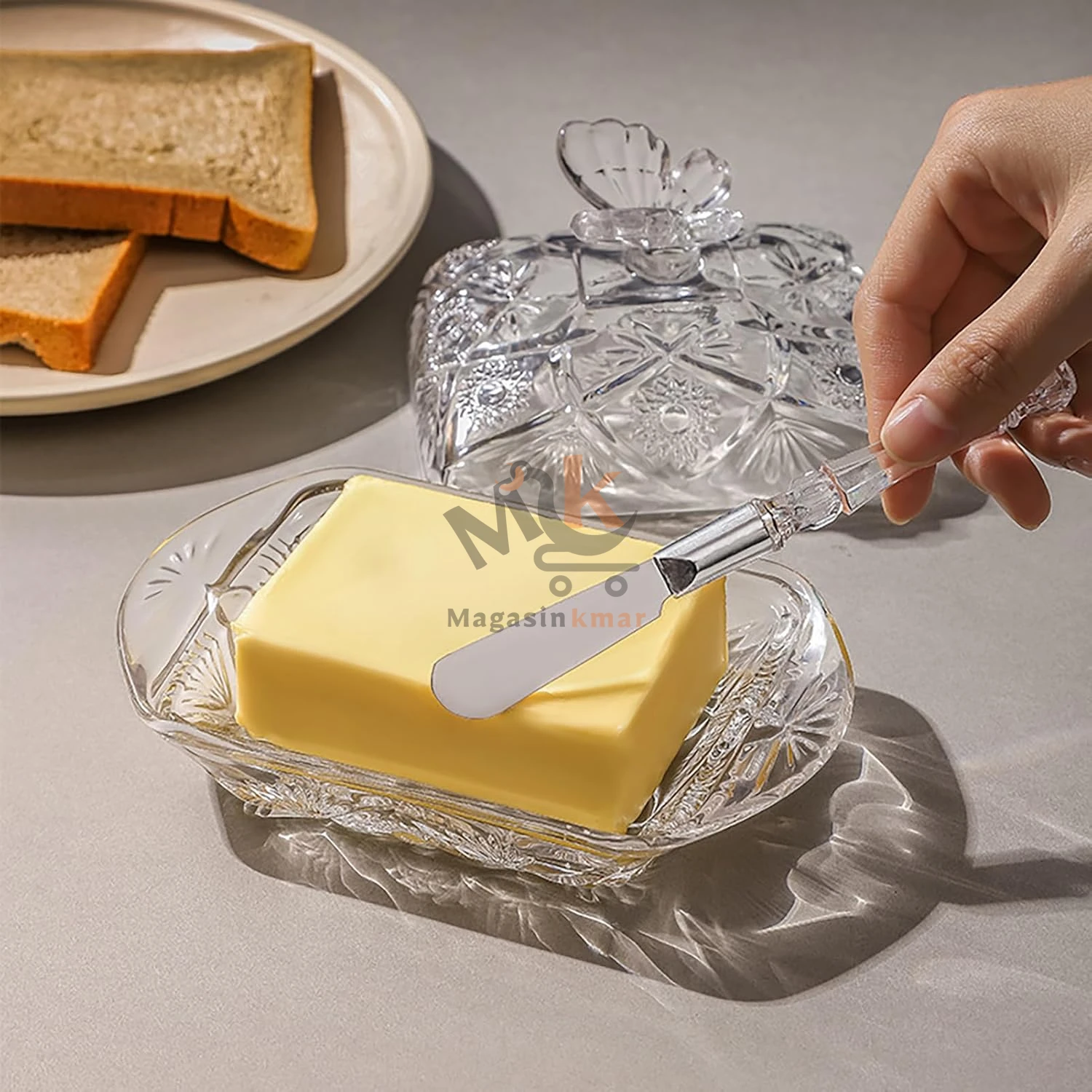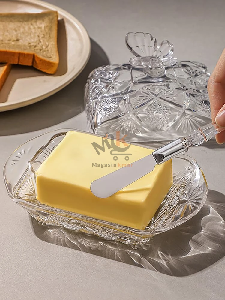 Beurrier en verre avec couvercle