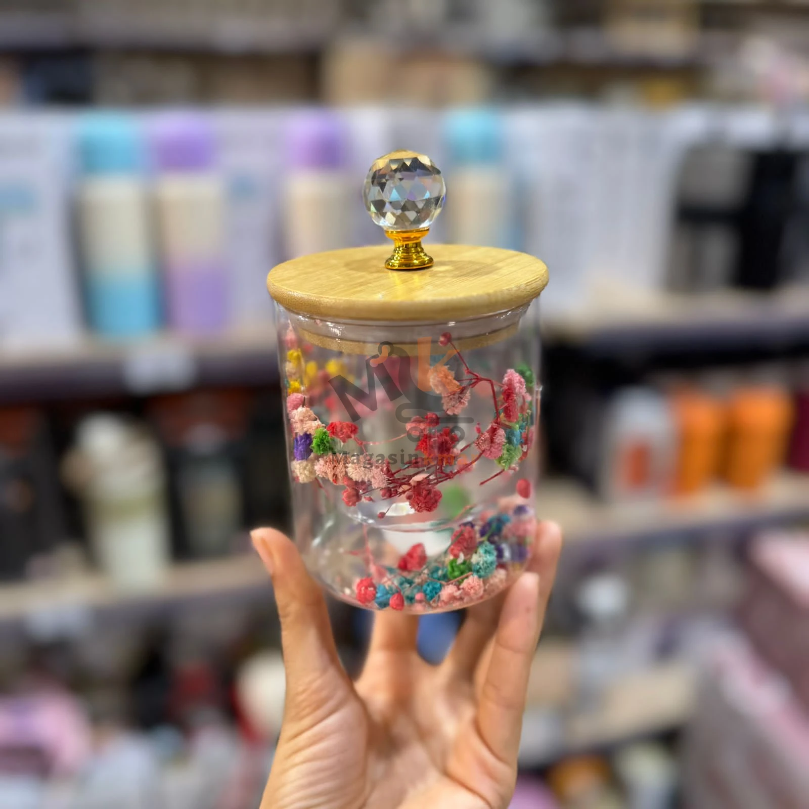 Boîte en verre double paroi avec couvercle en bois