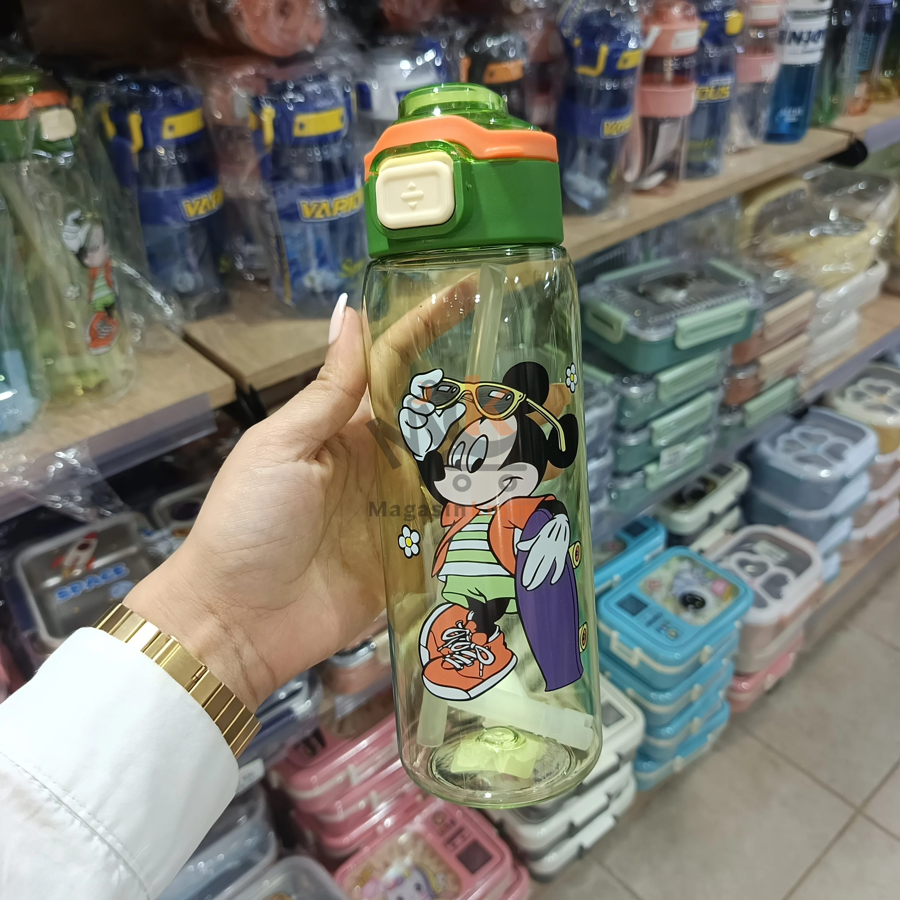 Bouteille d’eau en plastique alimentaire avec motif Stitch/Mickey Mouse