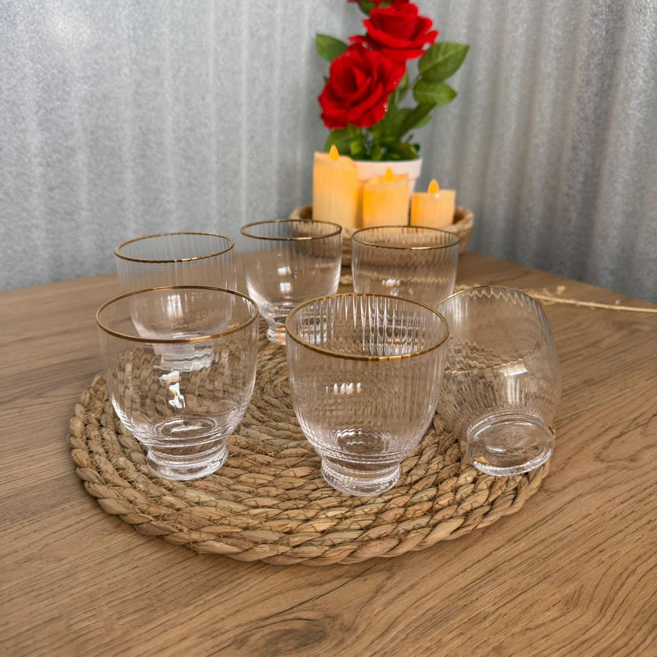 Lot de 6 verres en verre avec touche dorée