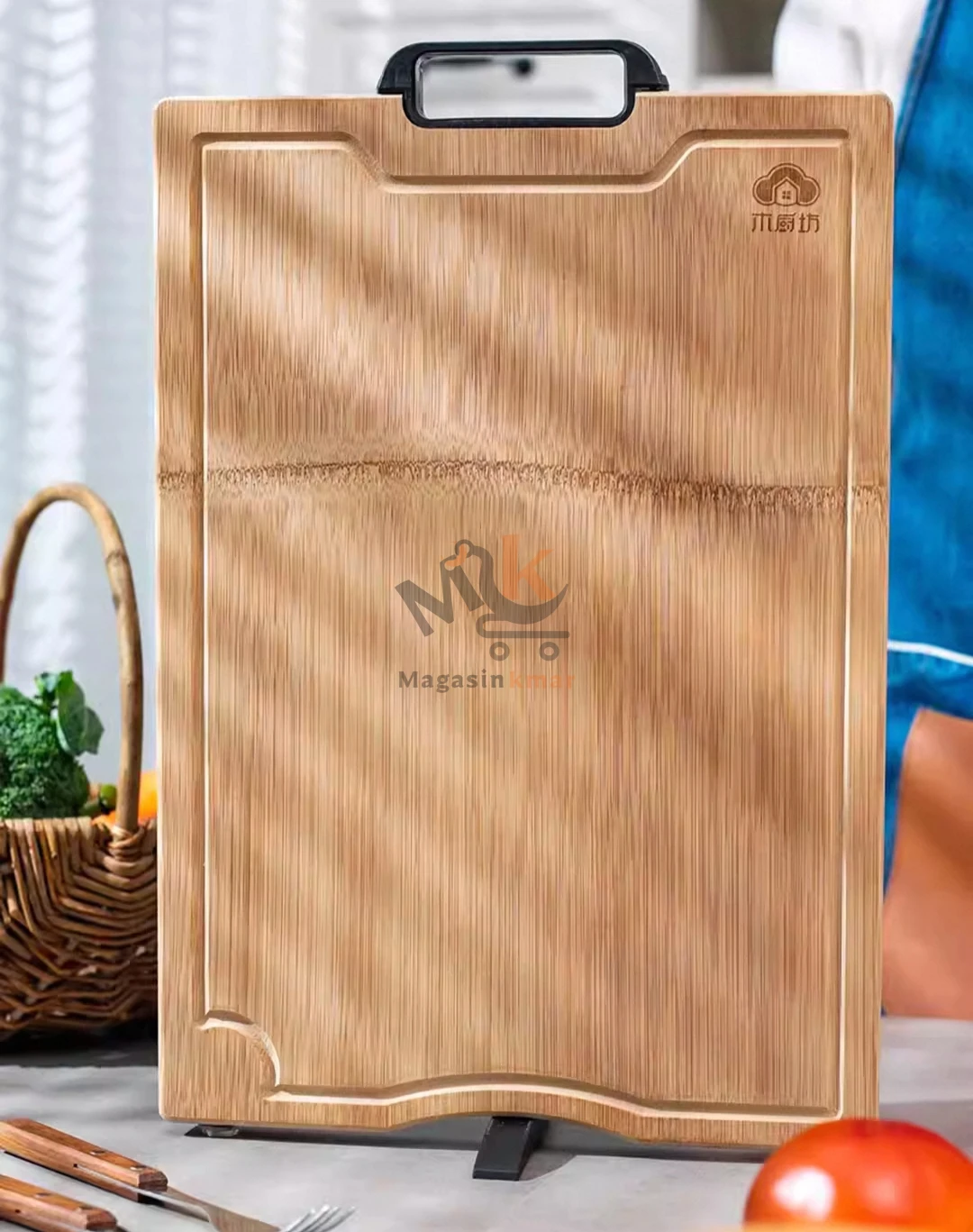 Planche à découper en bambou de 35 x 24 cm, robuste et hygiénique, idéale pour préparer viandes, légumes et fruits au quotidien.
