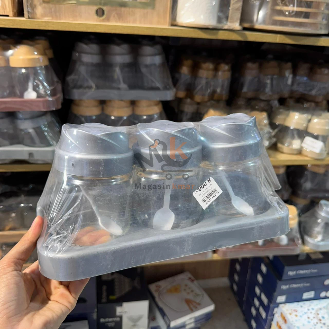 Organisez vos épices avec élégance grâce à cette série de 3 boîtes en verre avec couvercle plastique et support inclus – idéale pour un plan de travail bien rangé