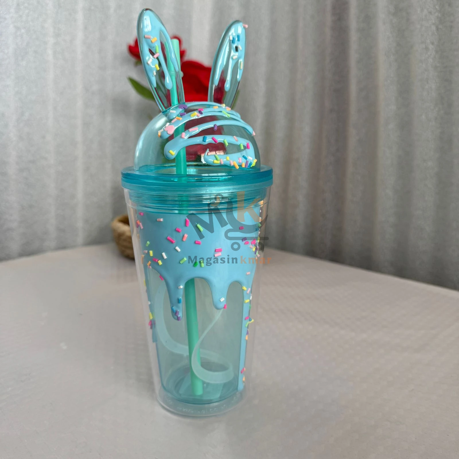 Gobelet en plastique avec couvercle et paille – Forme rabais