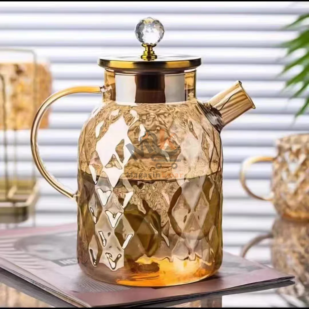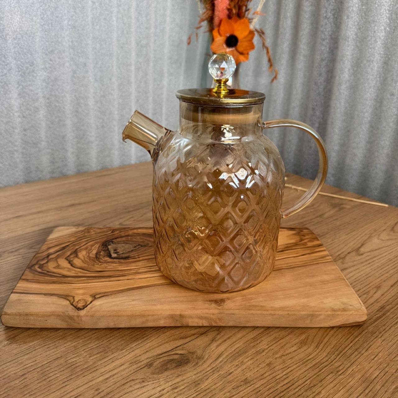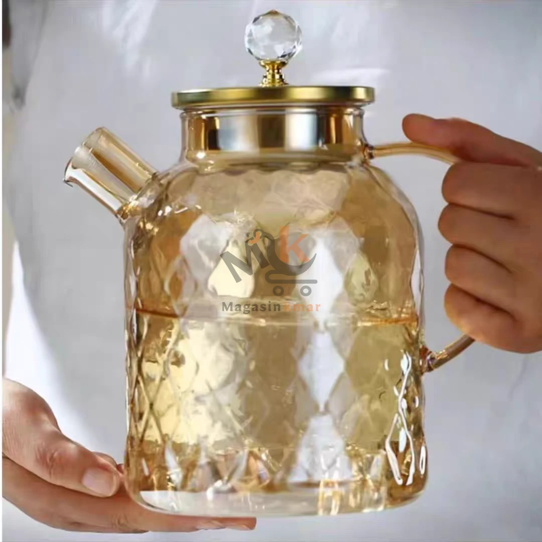 Théière en verre avec couvercle métal